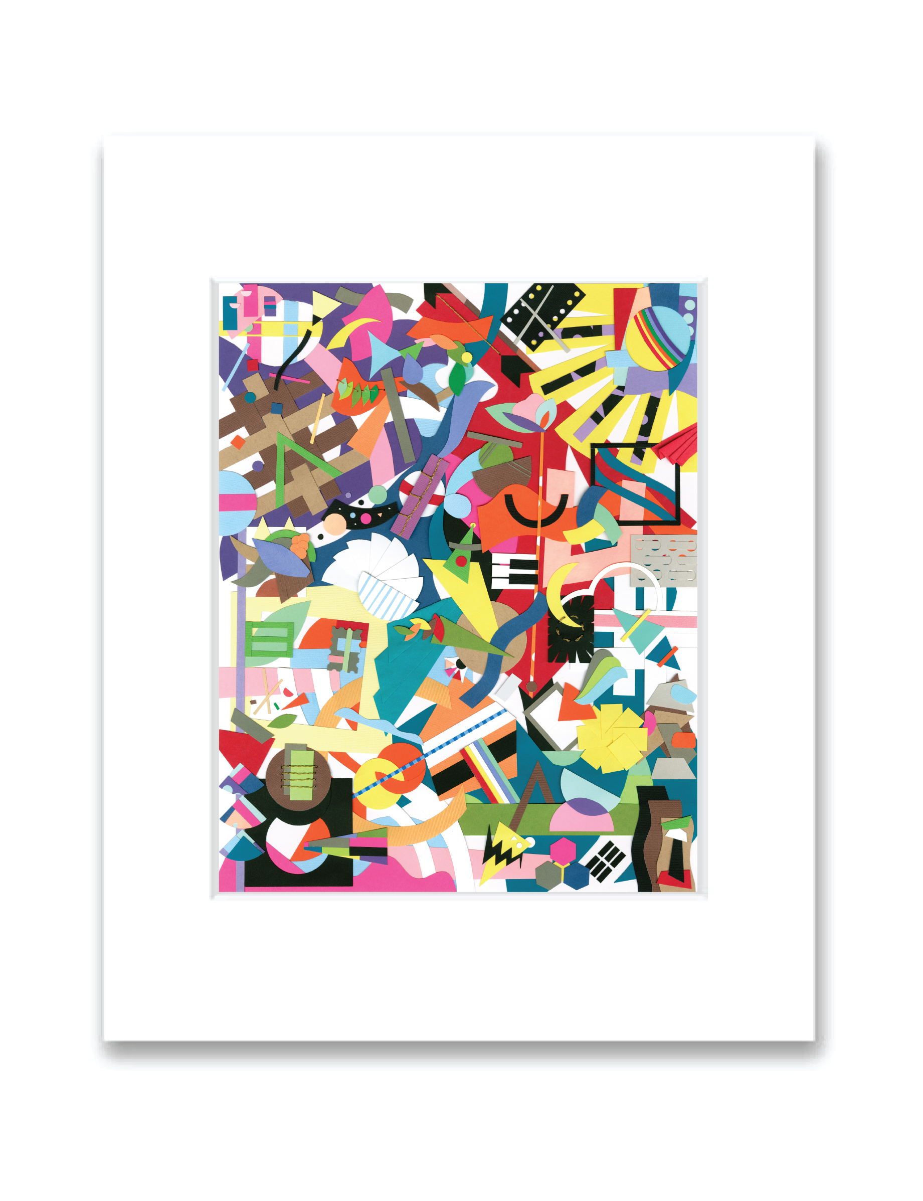 - Original collage is created from a variety of papers and embroidery thread