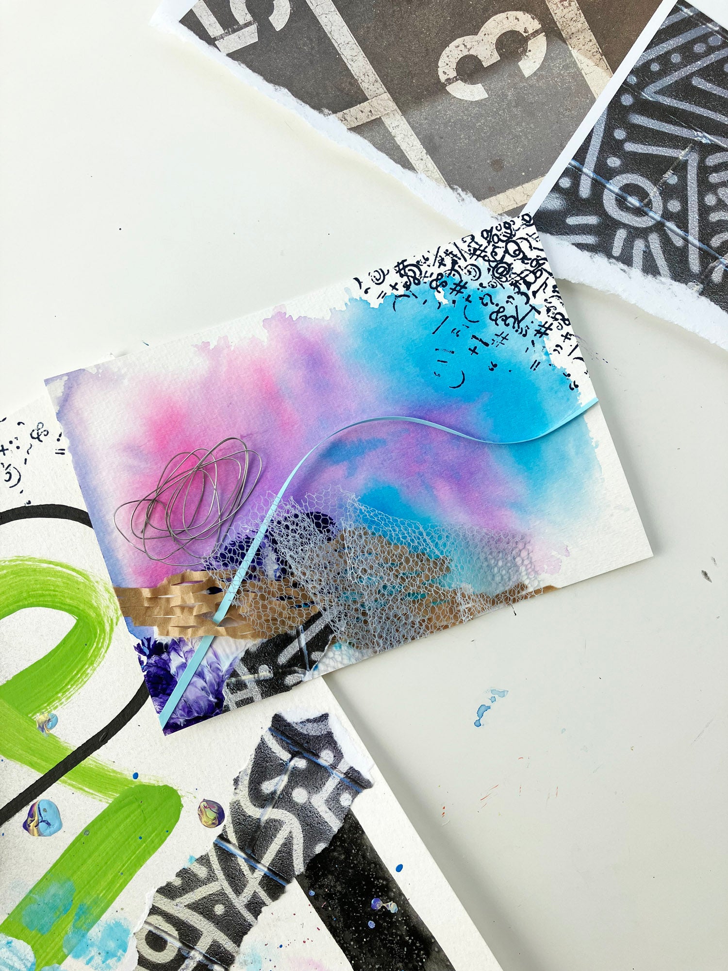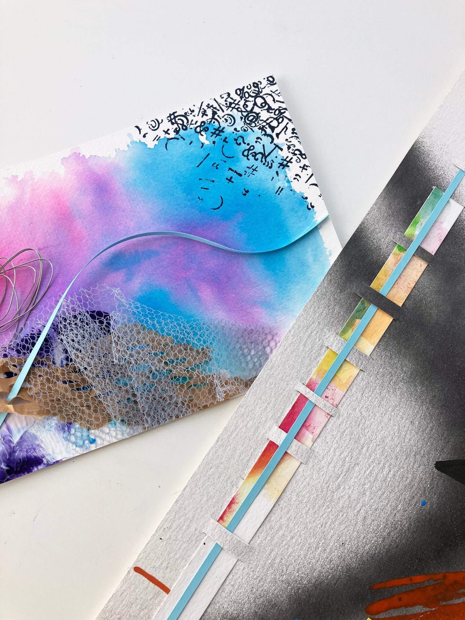 Alongside my main 100 Day Project (where I added one element to the same piece of paper for 100 days), I created 5x7 minis as a way to capture every 10 marks!