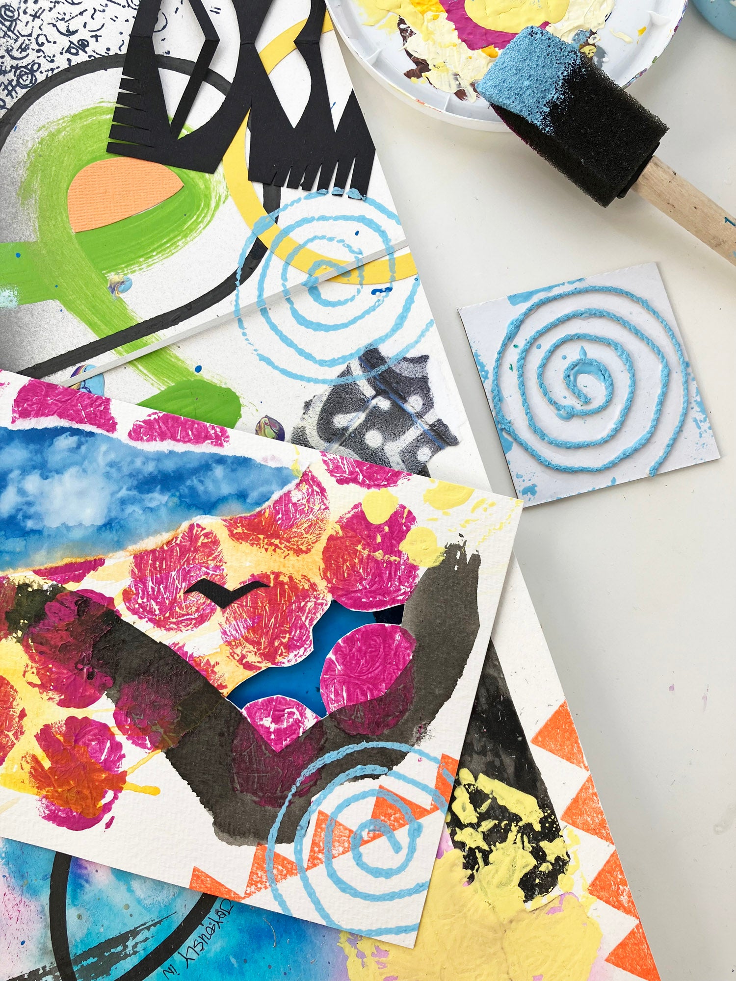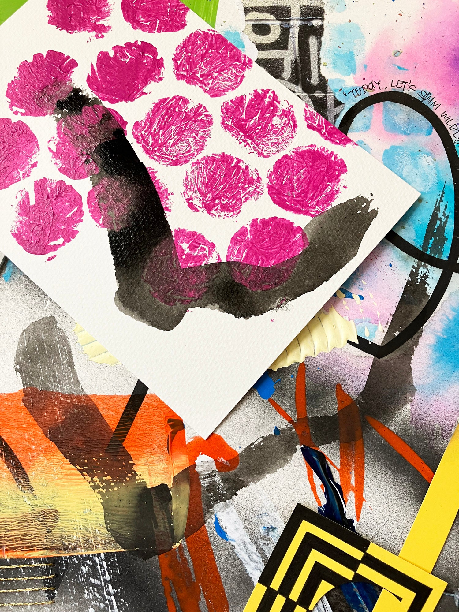 Alongside my main 100 Day Project (where I added one element to the same piece of paper for 100 days), I created 5x7 minis as a way to capture every 10 marks!