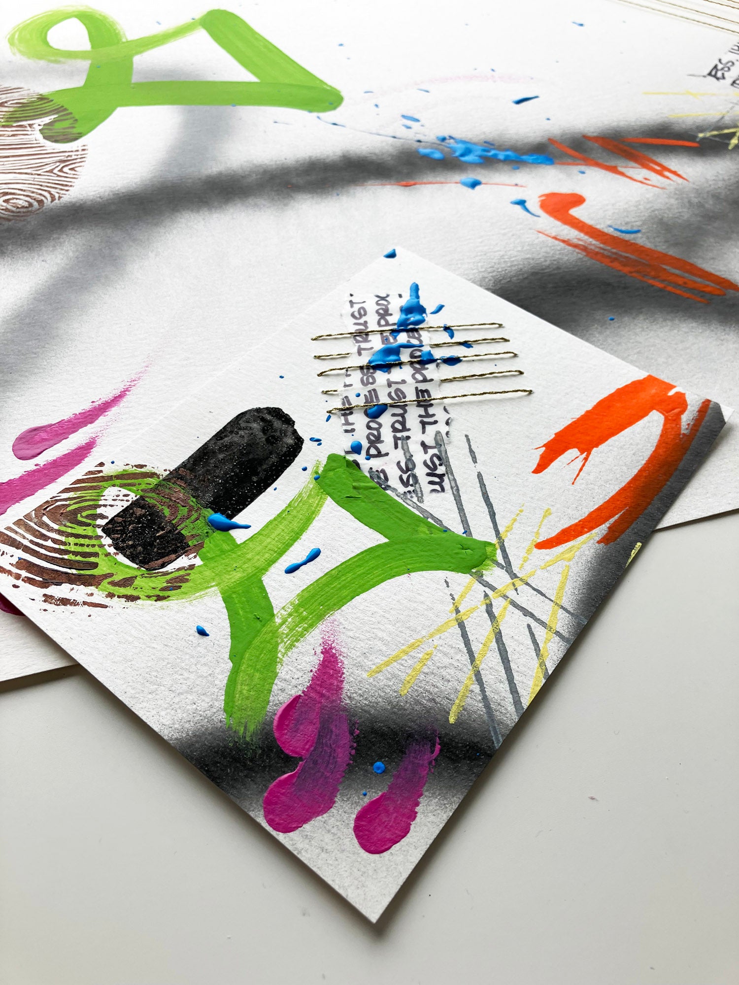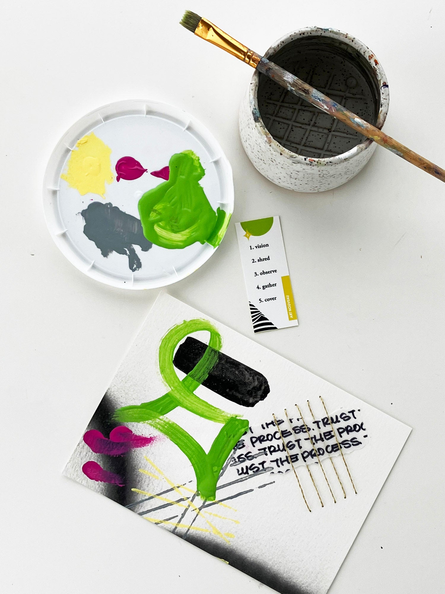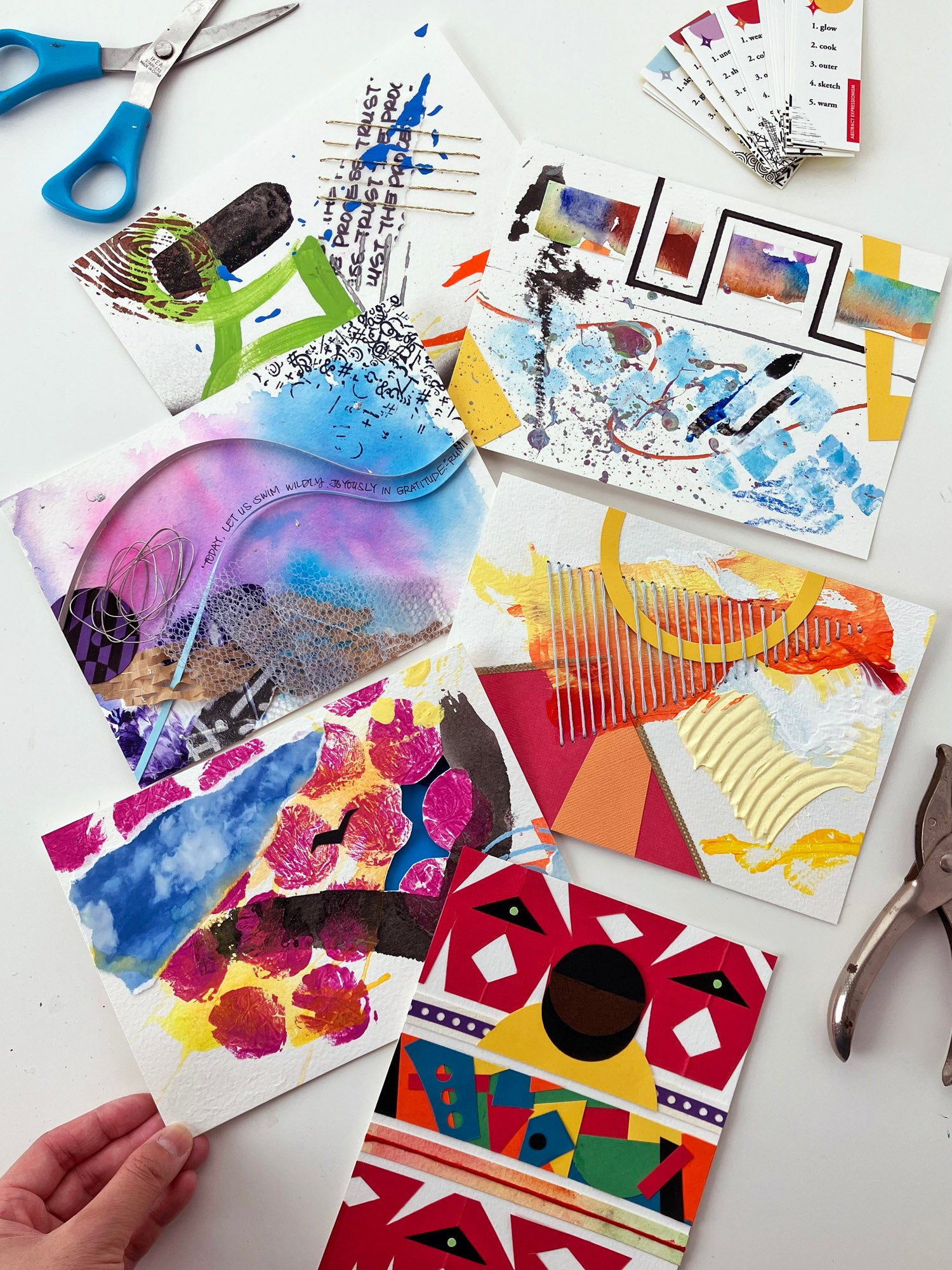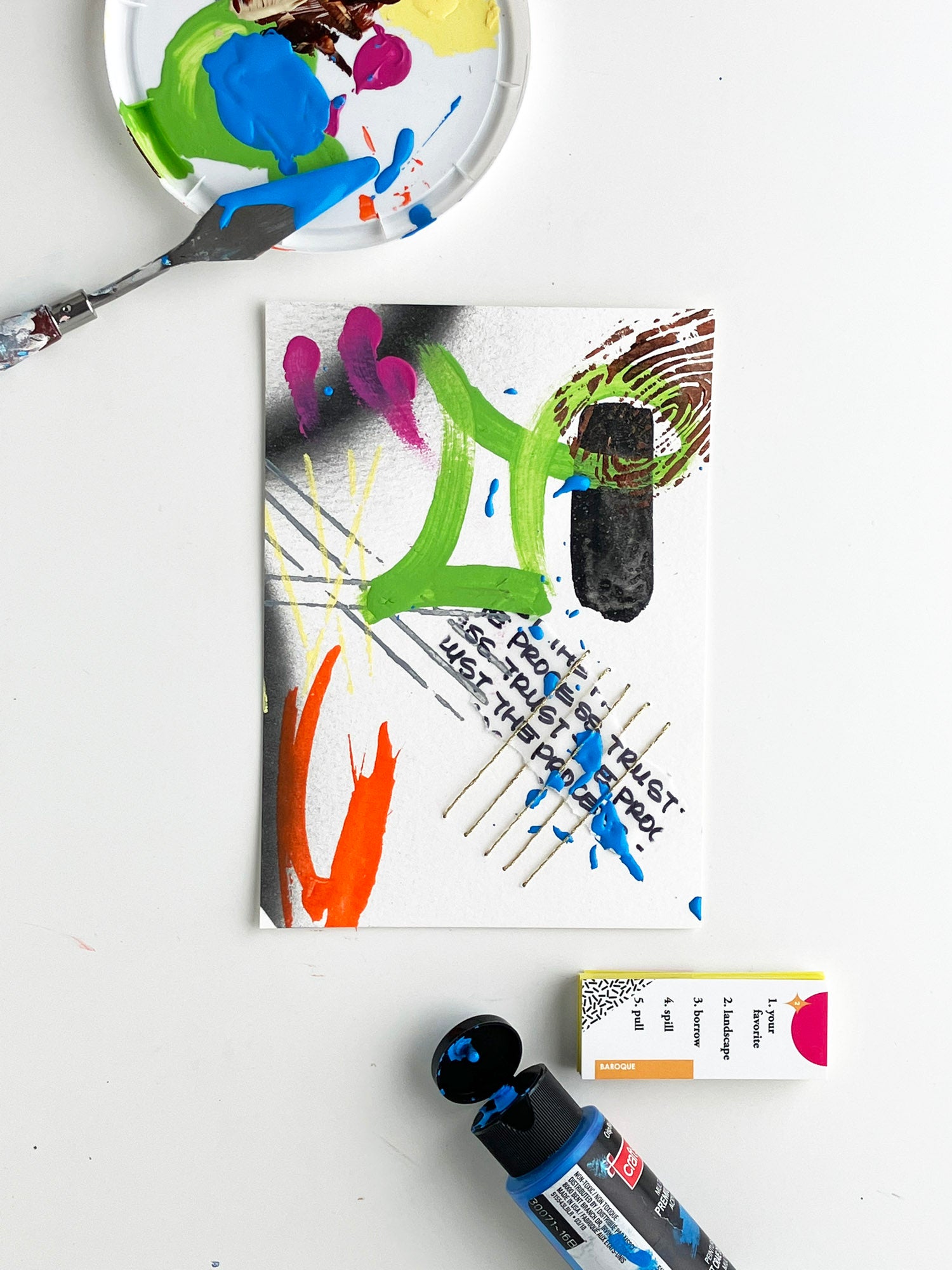 Alongside my main 100 Day Project (where I added one element to the same piece of paper for 100 days), I created 5x7 minis as a way to capture every 10 marks!