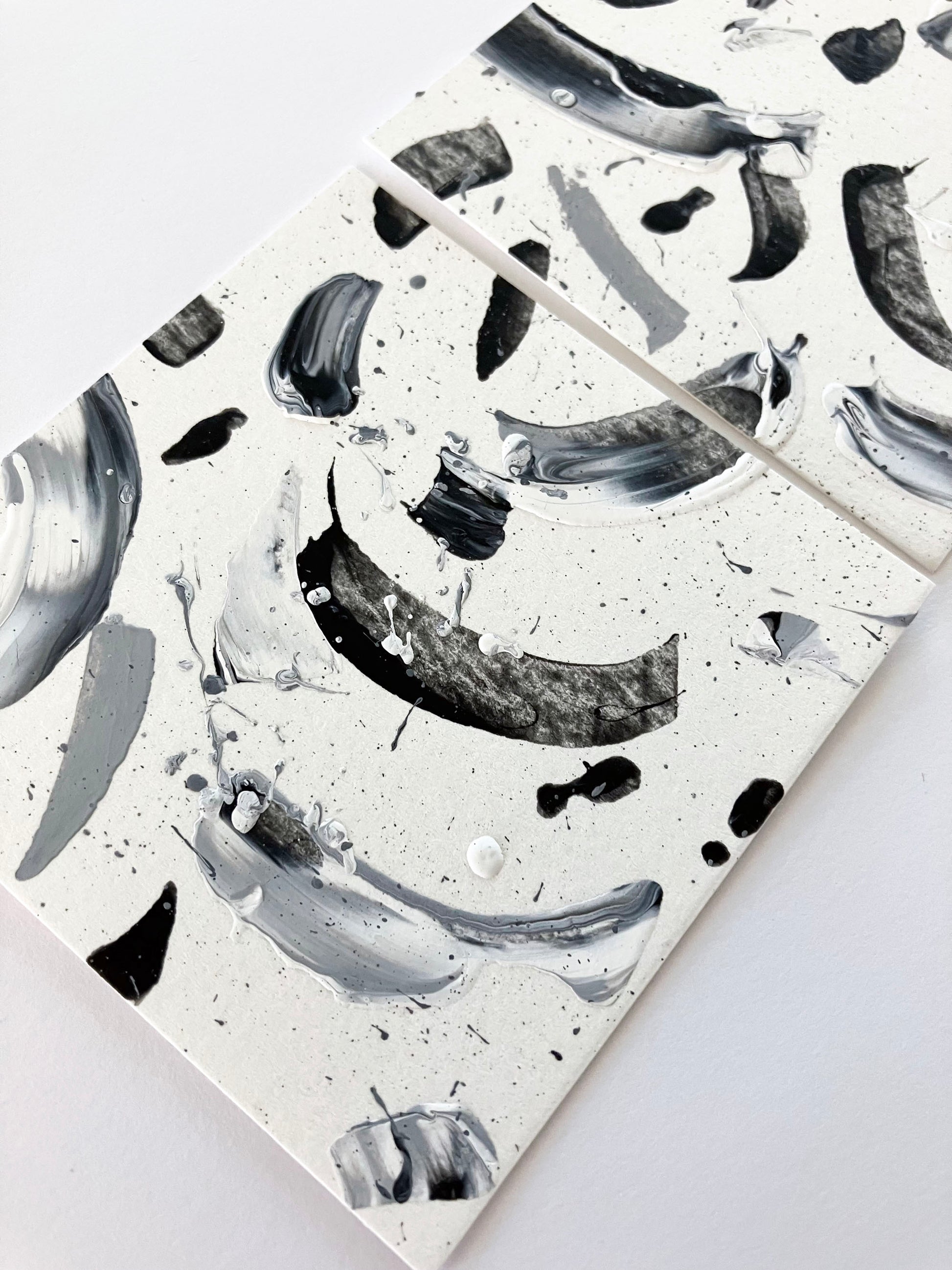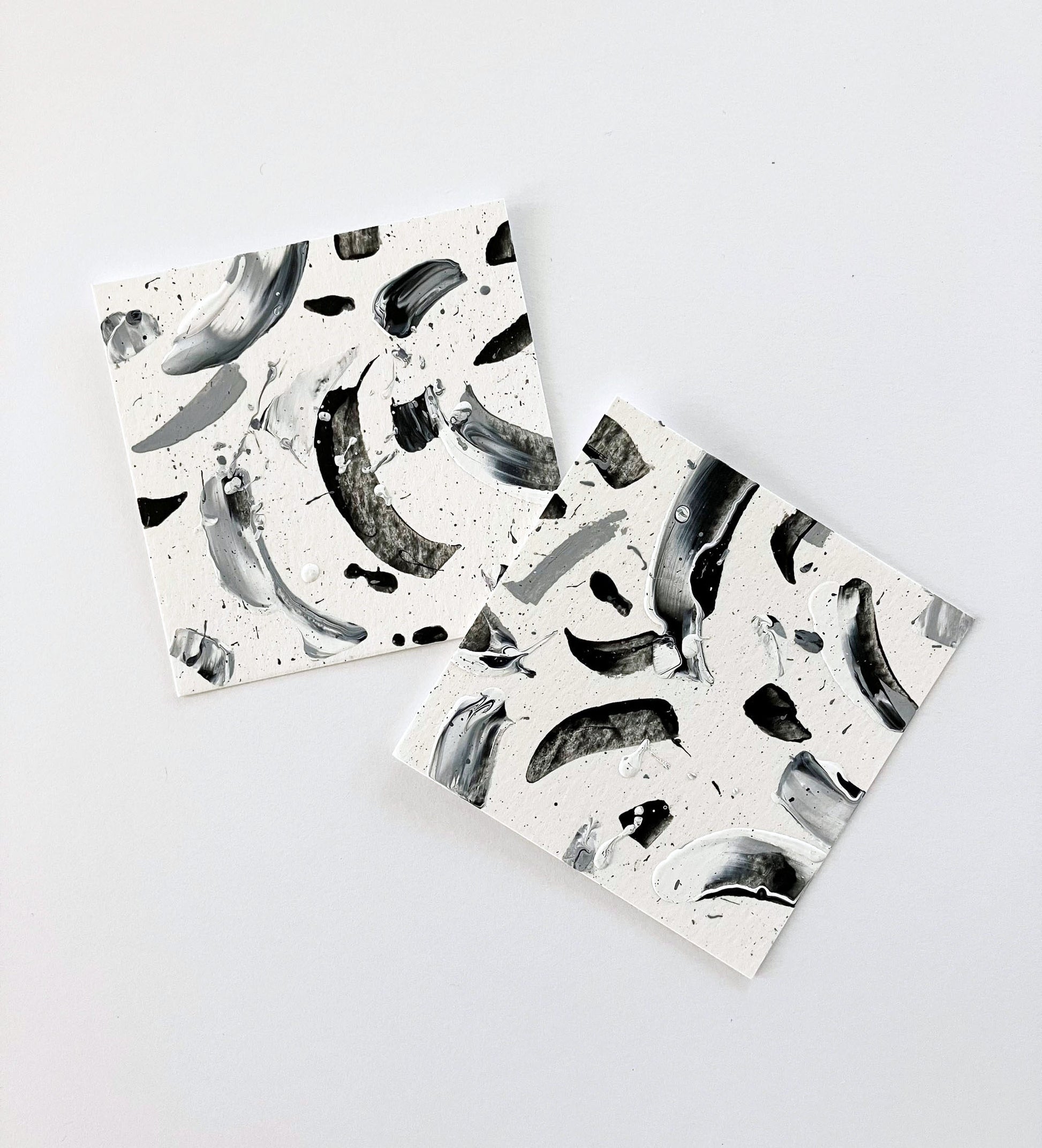 The Duality Mini Series is a collection of smaller abstract paintings inspired by ideas of duality, ties that bind us, and our connections. Each piece in the series is inspired by a specific subject and created from 1 painting cut into 2. The idea is to keep one and share the other with a loved one, like those old school best friends necklaces :) or feel free to keep both!