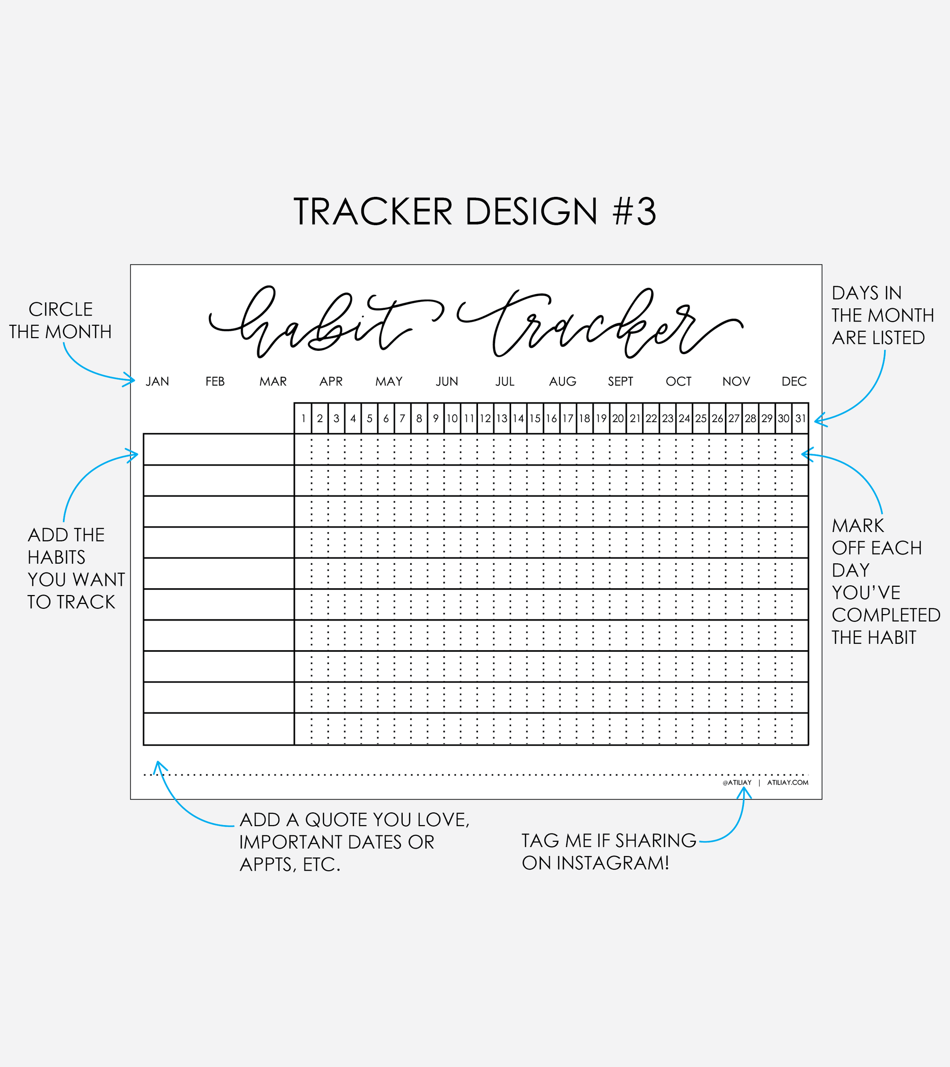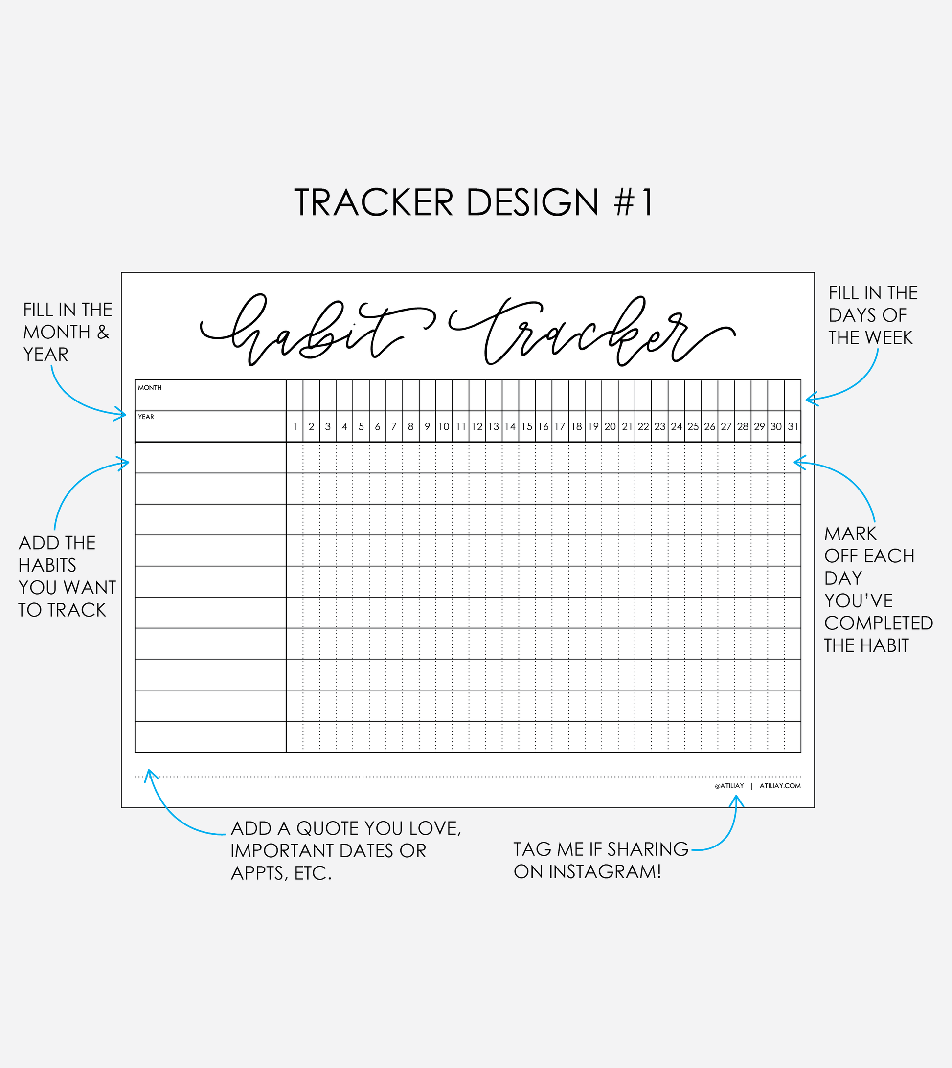 Use this Habit Tracker to stay on top of your habits and goals each month!