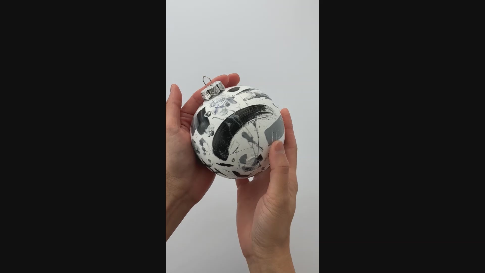 Hand Painted Ceramic Ornament #1 - Black & White Abstract, Round White Ornament