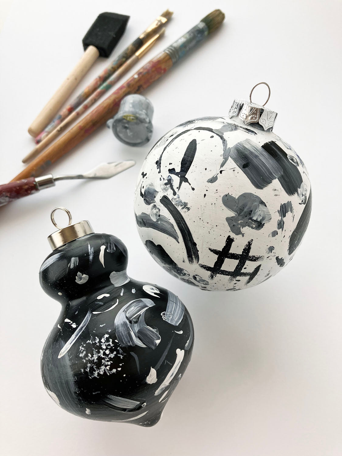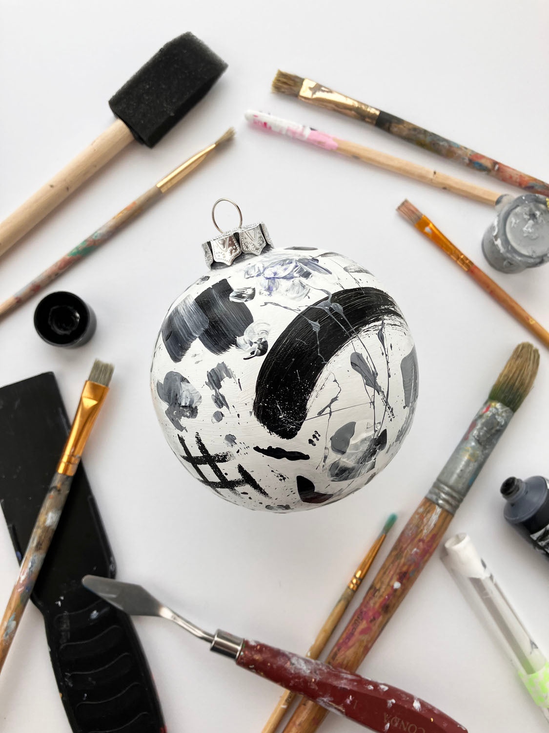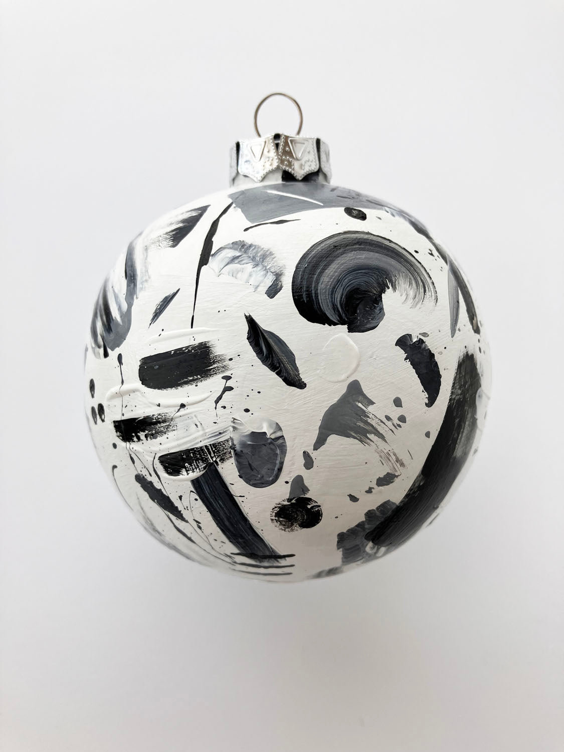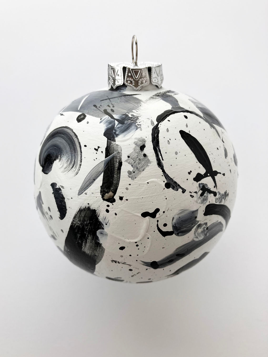This black and white abstract ornament is a nod to my 2021 100 Day Project where I added 1 mark a day onto a canvas. I loved every bit of the process and this project was a big game changer--it put me back on the path to art and painting! I decided to make prints and only sold a few. I am so grateful for the ones that did find a home but I'm not gonna lie, it was a bit of a bummer because I thought they'd connect a little better.